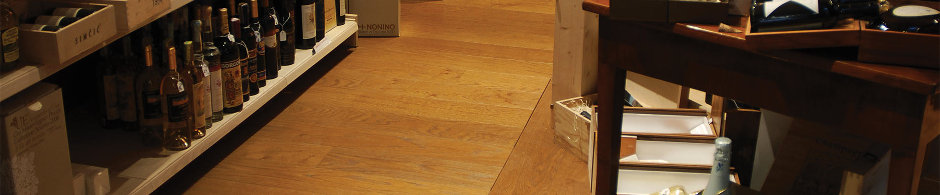 Parquet a 2 strati a tavola intera di grande e medio formato, proposto in un mix di differenti larghezze e lunghezze.